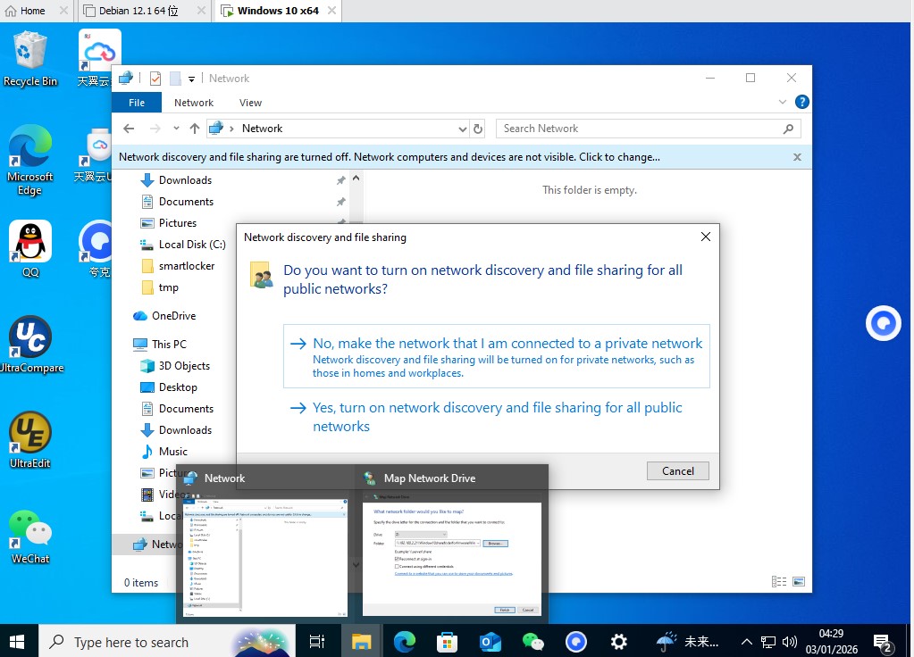 在虚拟机中,可以通过网络驱动器映射来访问宿主操作系统中的共享文件夹: