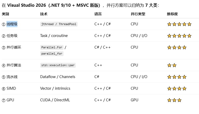VS 2026 并行编程方案(可选)