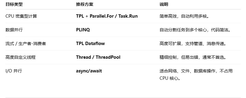3.如果其中有IO操作 最好用 TPL.Dataflow 库中的ActionBloack<T>等来控制异步操作并行度
